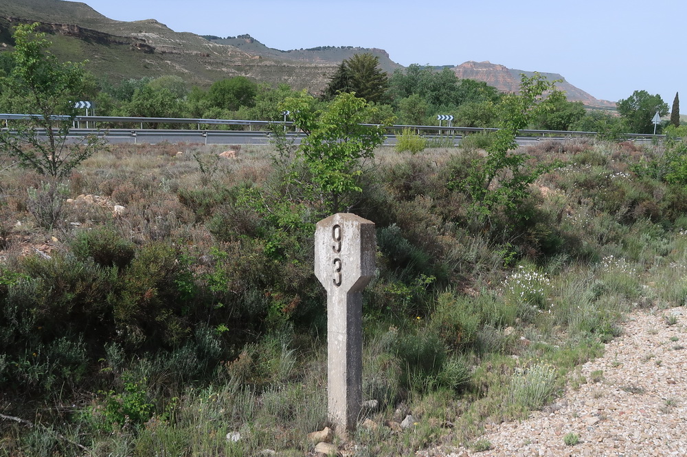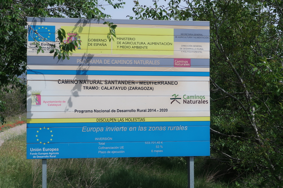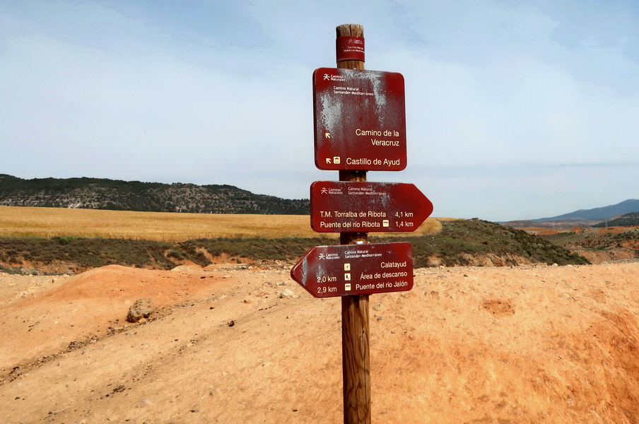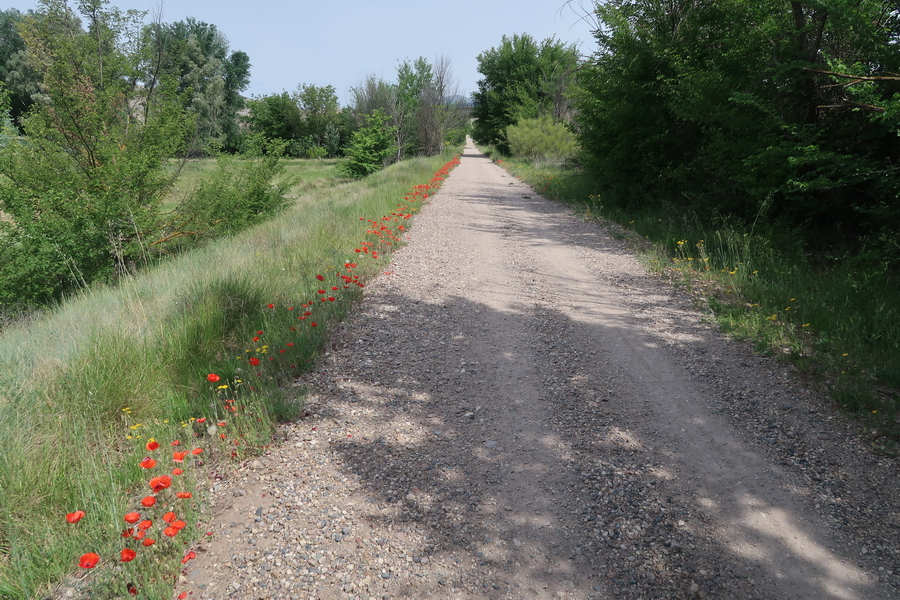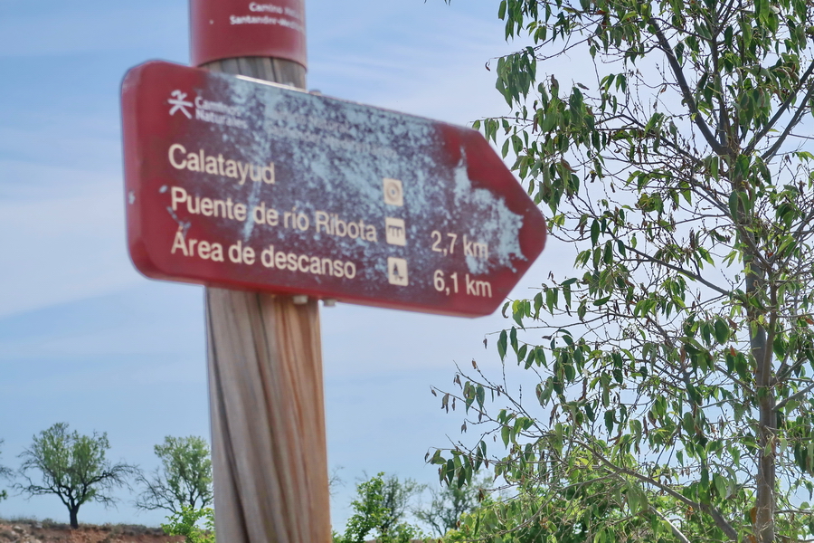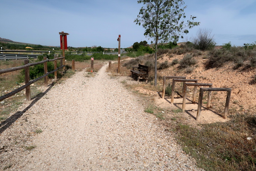 Der letzte Abschnitt der Strecke der Eisebahnstrecke des Santander Mediterraneo vor dem Knoten Calatayud ist nur auf einem kurzen Abschnitt von 7,9 km ausgebaut. Wir beginnen in diesem Fall in der Gegenrichtung von Calatayud aus, weil die Ausbaustrecke im Jahr 2024 in der Einöde an der Nationalstraße endet. Der nördliche Abschnitt vom Ausbauende in Ciria (Castilla y León) endet bisher an der Provinzgrenze nach Aragón. Nur noch knapp 38 km trennen den Radweg vom Abschnitt Ribota und knapp 8 km weiter von der Stadt Calatayud. Dieser Abschnitt Ribota macht einen vernachlässigten Eindruck, die Fahrbahn ist steinig und die Infrastruktur wenig attraktiv.