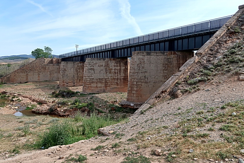 In dem kurzen Abschnitt Richtung Ribota liegen keine Bahnhöfe, es gibt keine Dörfer direkt am Radweg. Sehenswert ist das Viadukt über den Fluss Ribota und man gewinnt einen Eindruck in die "Mondlandschaft" dieser Region.