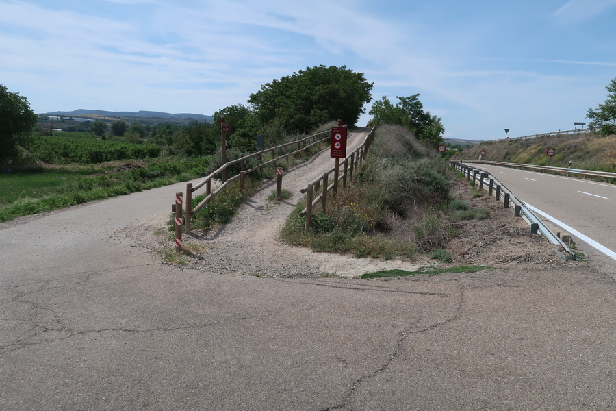 Vor dem Städtischen Friedhof Cementerio Municipal de la Soledad wurde die Trasse durch Straßenbau unterbrochen, man fährt eine steile Rampe hinunter. Gegen über geht es ebenso steil wieder hinauf.