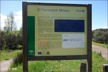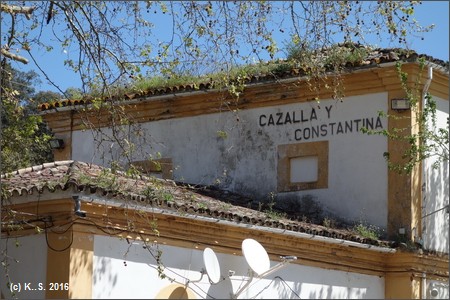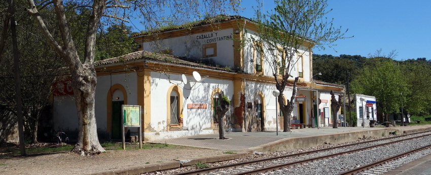 Der aktive Bahnhof "Cazalla y Constantina" - spärlicher Zugverkehr! Eine Infotafel zum Radweg steht direkt am Bahnhof.