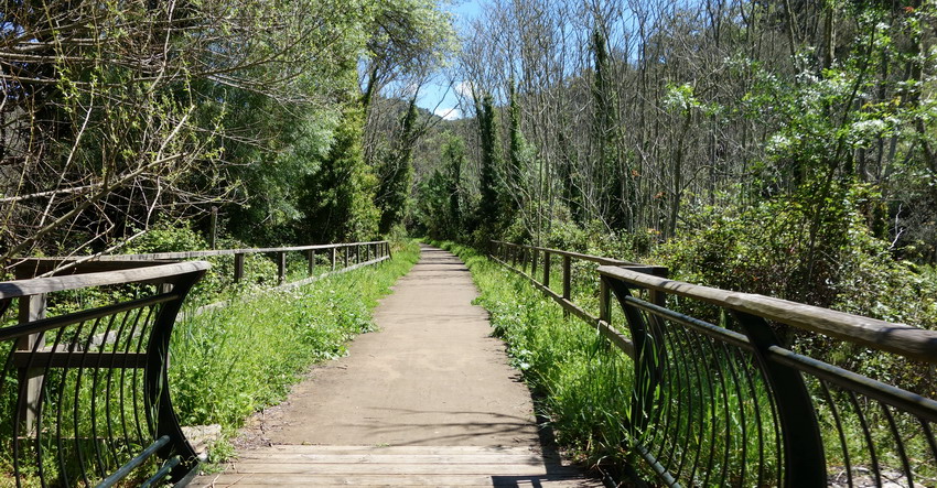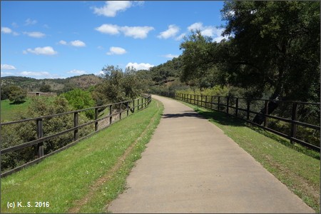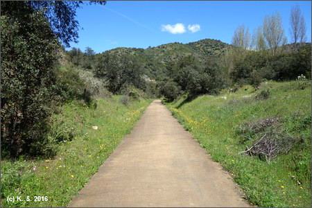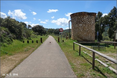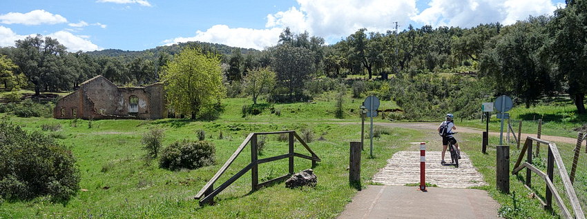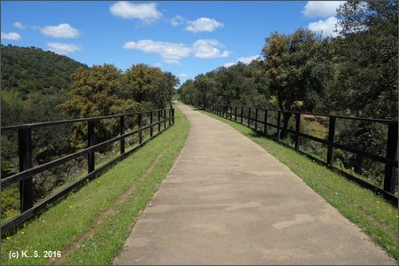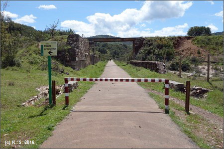 Dann hinab und über den Fluss Huéznar. Hier trifft man auf die Trasse der ehemaligen Minenbahn.