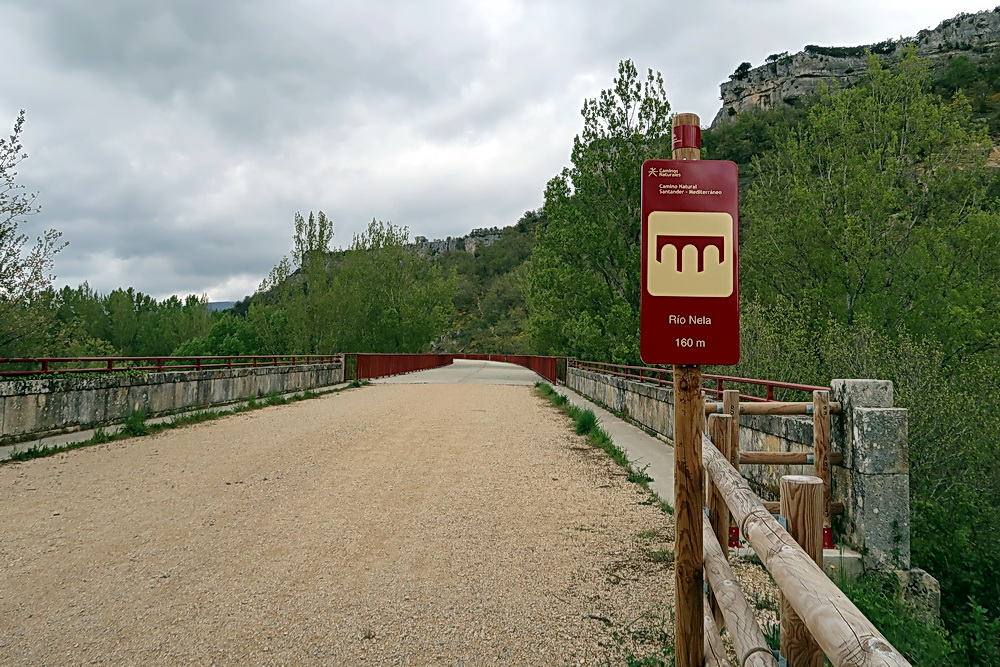 Auf dem Radweg von Villarcayo und Puentedey aus Richtung Norden erreicht man noch vor dem Bahnhof Santelices die Verzweigung nach Dosante oder Pedrosa. Hier muss man nun die rechte Spur nehmen, und nach kurzer Fahrt erreicht man das Viadukt über den Rio Nela (160 m lang).