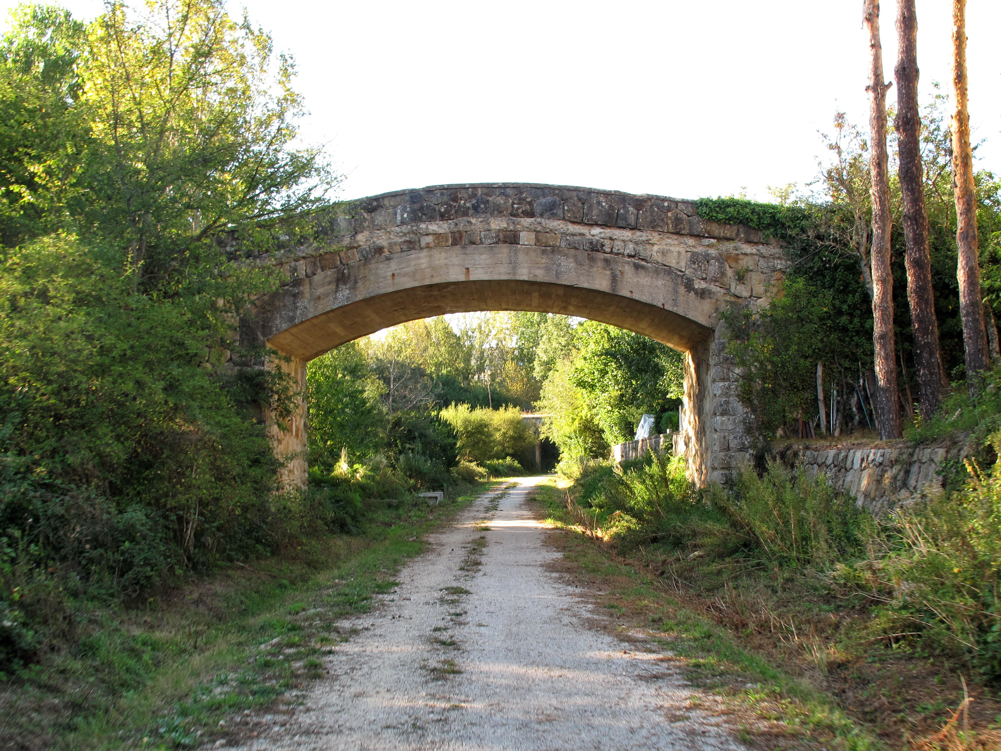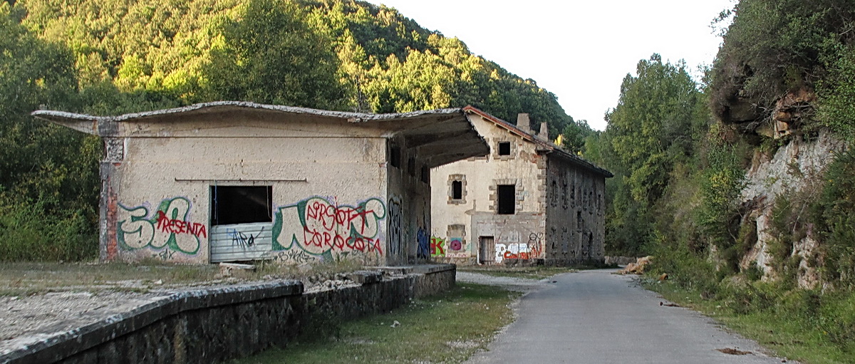 Zwei alte Steinbrücken überqueren die Trasse: Die eine Brücke dient als Zugang zum Dorf, die andere ist die Brücke der Bahnstrecke nach Bilbao.