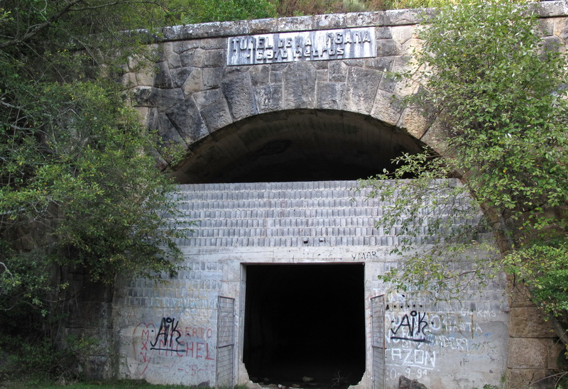 Die Vía Verde führt in eine Höhe von ca. 750 m über dem Meeresspiegel zum südlichen Tunnelportal, das inzwischen von der Vegetation überwuchert ist und bei unserem Besuch in einem sumpfartigen Gelände lag. Der Tunneleingang war nicht ohne weiteres zugänglich.
