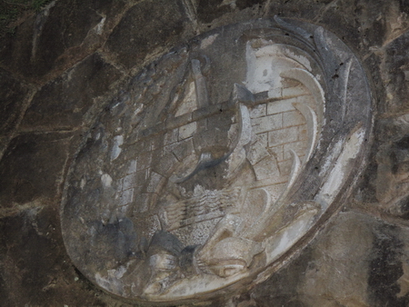 6976 m lang ist das Bauwerk - so steht es über dem Portal! Die alten Wappen über dem Tunneleingang sind kaum noch zu erkennen.