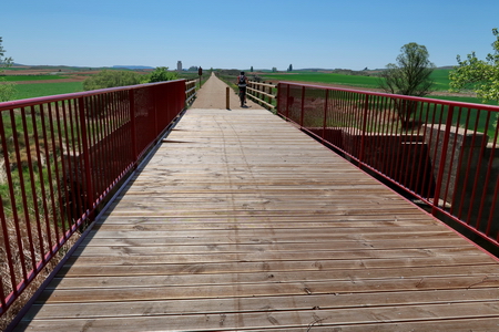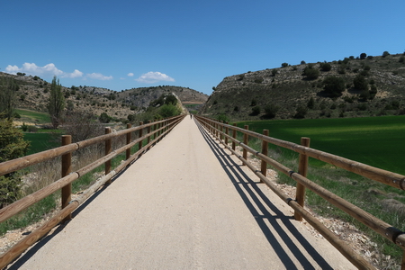 Die Geschichte der Bahnstrecke Ferrocarril Santander-Mediterráneo erstreckt sich über sechs Bauabschnitte. Der Bau des Abschnitts (span: Tramo) von Soria nach Calatayud mit einer Länge von 96 Kilometern wurde 1927 begonnen. Etwa vier Jahre später war der Abschnitt von Calatayud in nördlicher Richtung betriebsbereit, die gesamte Fertigstellung scheiterte jedoch an den Verzögerungen beim Bau des Abschnitts der Durchquerung der Spanischen Kordillere durch den Tunnel von La Engaña. Der Betrieb zwischen Calatayud und Soria wurde im Herbst1929 aufgenommen. Mitte der 1980er Jahre beschloss die Spanische Regierung die Schließung der defizitären Bahnstrecken, und nach der Jahrtausenwende entstanden Stück für Stück die Vías Verdes (Grünen Wege) auf den entwidmeten Bahntrassen. Inzwischen sind etwa 250 der 442 Kilometer des Ferrocarril Santander-Mediterráneo in einen Radweg umgewandelt worden, noch ist aber unklar, wie die Bergkette bei La Engaña überwunden werden soll, bzw. ob der fast 7 km lange Tunnel wiederhergestellt und freigegeben werden kann.