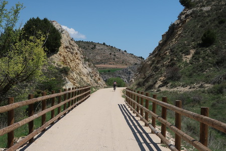 Der Ort Ciria liegt links des südlichen Tunnelausgangs am Hang des Río Manubles und hat nur noch etwa 20 Einwohner. Noch 1,7 km folgt man dem Radweg am rechten Hang des Flusses.