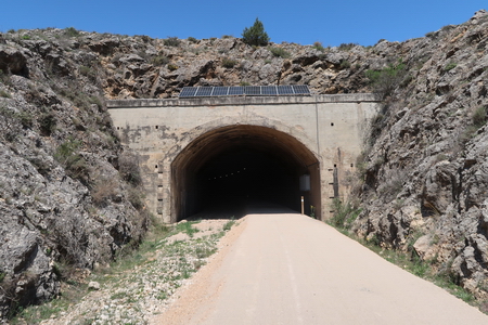Kurz darauf steht man vor dem Portal des Tunnels von Ciria, 245 m lang und beleuchtet. Über dem Südportal befindet sich die Solaranlage zur Tunnelbeleuchtung.