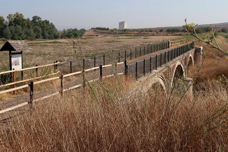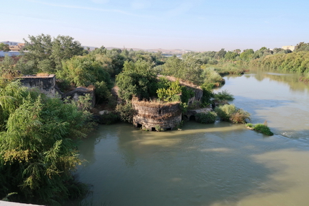 Startpunkt an der Brücke San Rafael über den Guadalquivir, die Ruinen der alten Mühlen stehen im Wasser des Flusses.