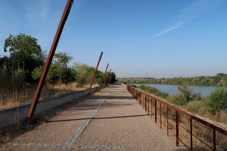Der Startpunkt der Vía Verde liegt 8,5 km entfernt, rechts abbiegen, am Fluss entlang. Der vernachlässigte Weg sollte den Radler nicht abschrecken! Vorbei an der Puente de Andalucía. Eine Wegweisung zur Vía Verde sucht man vergebens.