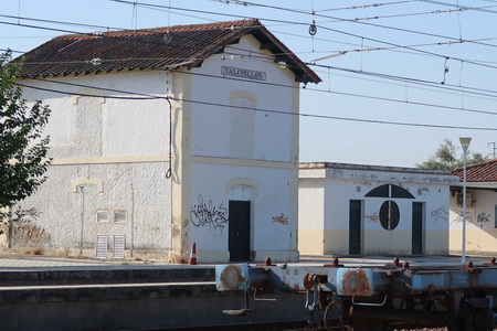 Durch ein Industriegebiet erreicht man die Landstraße zum Bahnhof Vallchillón (A-3051). Als Wegweiser dient der riesige Silo, eine Infotafel der Vías Verdes ist vor Ort, der erste Hinweis auf den Radweg.