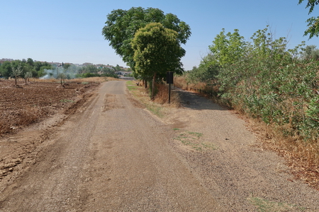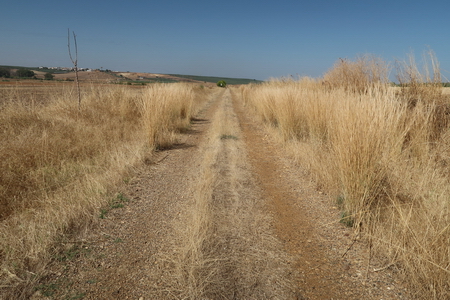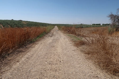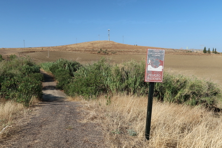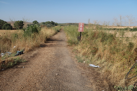Der Weg ist weiterhin ungepflegt, die Kilometrierung wurde herausgerissen. Von einem verwahrlosten Mirador aus erkennt man in der Ferne Almodóvar del Rio am Guadalquivir.