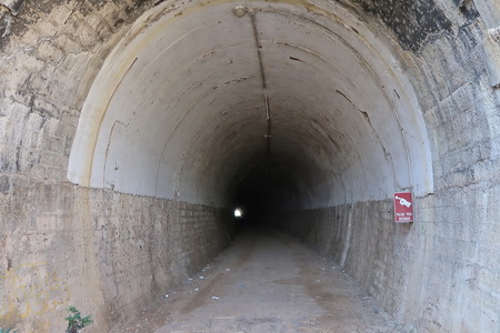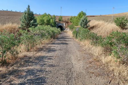 Der einzige Tunnel der Strecke taucht auf: Túnel de Las Tablas, 300m lang). Wie es scheint, ist er bald zugewachsen.