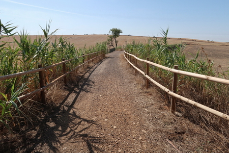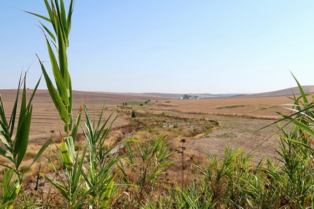 Der Bach Arroyo de la Torvisca hat ein grünes Band in der dürren Landschaft hervorgezaubert.