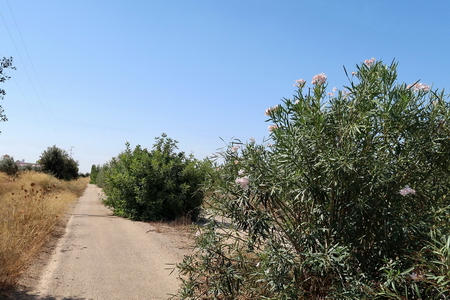 Der zunächst noch recht naturbelassenen Radweg, vielleicht eher ein Feldweg für die Bauern, verwandelt sich bald in einen echten Radweg, gesäumt von blühenden Büschen.