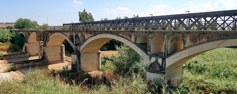 Das Wasser des Río Genil ist braun von Schlamm wie nach einem Sturzregen. Gleich zwei Bahnbrücken überspannen den Fluss. Die Eisenkonstruktion aus dem Jahr 1885 dient als Autobrücke für die eine Spur.