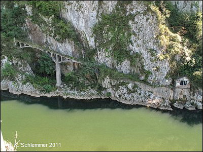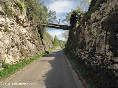 Direkt nach dem Tunnel folgt eine Brücke, dann ein steiler Einschnitt mit senkrechten Felswänden
