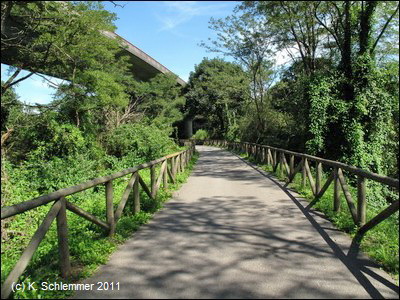 Umgeben von einer dichten Vegetation unterquert man nochmals die A-66, bevor man den Parque de Invierno erreicht. Von hier aus ist es nur ein Katzensprung in die Stadt.