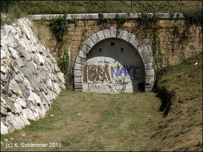 Die alte Bahnstrecke hatte noch einen Tunnel aufzuweisen, Túnel San Lázaro Sur, der heute zugemauert ist.