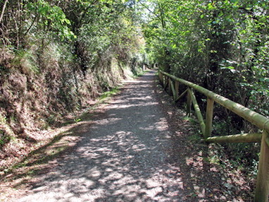 Nach dem Abzweig nördlich von Caranga de Abajo geht es zunächst leicht aufwärts durch den Wald. Bei P.K.11 befand sich die erste Kilometrierung des Abschnitts.