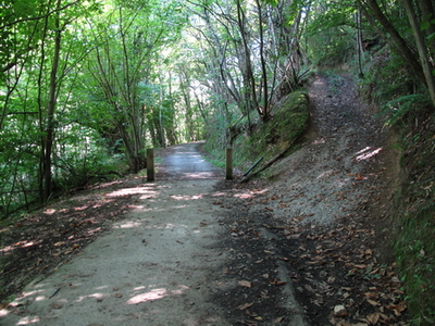 Nach einigem Auf- und Ab ist man wieder auf der Trasse. Ein angenehmer Radweg führt durch den Wald.
