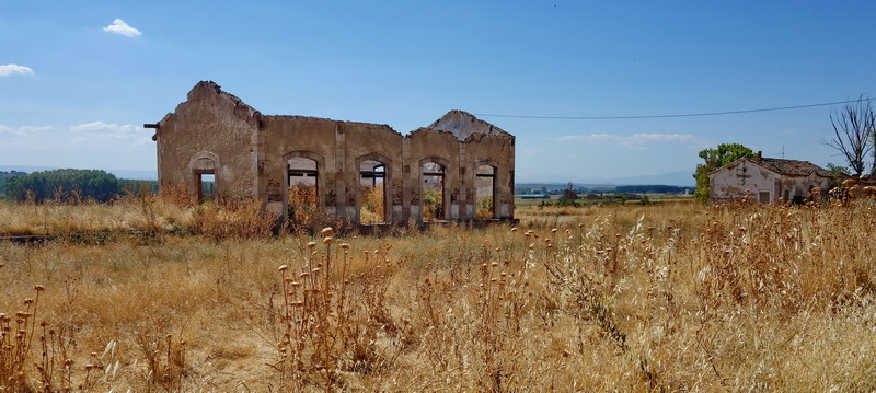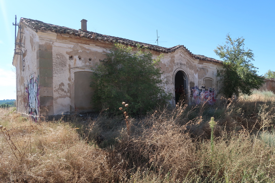 Im September 2024 findet man am Bahnhof Alba ein einsames Szenario. Kein Schatten am Rastplatz, aber wenigsten freigeräumt und gemäht. Die Landschaft ist von der Trockenheit gezeichnet und die Bahntrasse teilweise zugewachsen.