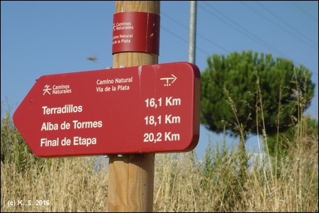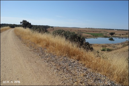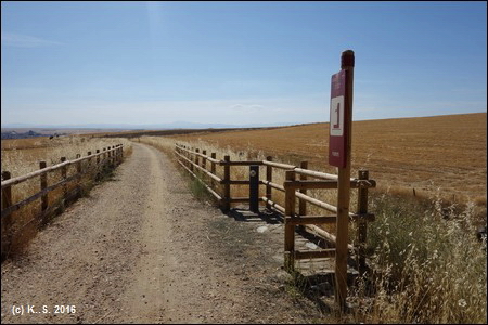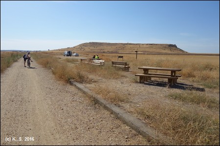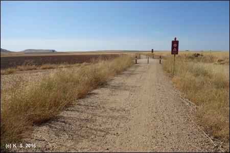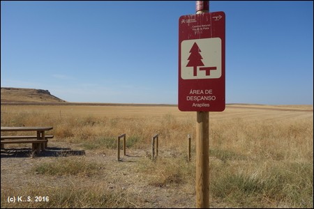 Kilometer 16 des Radwegs. Eine Wasserstelle beim Ort Terradillos.