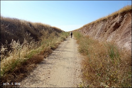 Es geht aufwärts durch den Einschnitt. Endlose Getreidefelder in der Hochebene.