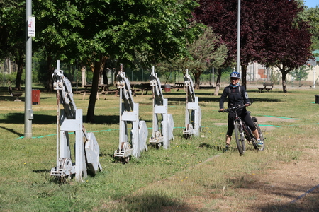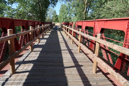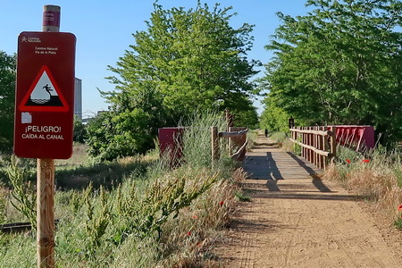 Abfahrt am Bahnhof von Benavente am westlichen Stadtrand im Park am Fluss bei Kilometer 8 des Radwegs.