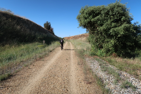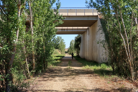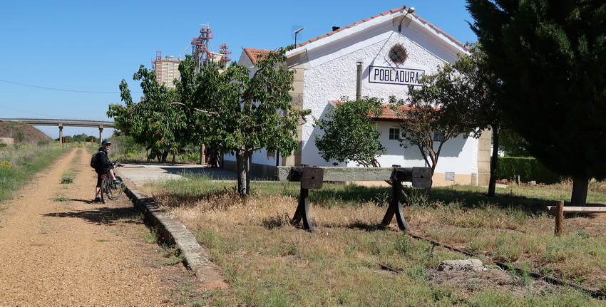 Eingerahmt von Büschen und Gestrüpp durchzieht die Trasse die Landschaft und erreicht bald den alten Bahnhof von Pobladura del Valle. Die Gebäude einer großen Fabrik für landwirtschaftliche Produkte stehen in merkwürdigem Kontrast zu den alten Bahnanlagen. Nur noch 4,9 km trennen uns von der Provinzgrenze zwischen Zamora und León. Dort endet die Vía Verde abrupt an einer Straßenbrücke im "Niemandsland", der nächste Ort, Maire de Castroponce, 160 Einw., ist 6 km entfernt.