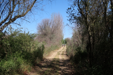 Weiter auf der Trasse, folgt man zunächst an einem Arm des Río Órbigo entlang, dann durch Steineichenwälder. Westlich erstrecken sich weite Felder, östlich des Radwegs liegt die einsame Dehesa de Mosteruelo. Ein seltsames Bild bietet sich in Villabrázaro, wo zahlreiche Lüftungskamine der unterirdischen Bodegas aus der Landschaft ragen. Inmitten der kargen Landschaft erheben sich die Ruinen des Santuario de Nuestra Señora del Valle (bei San Román), ein ehemaliges Kloster, das in Folge der "Kirchlichen Exklaustraktion von 1835" aufgegeben wurde.