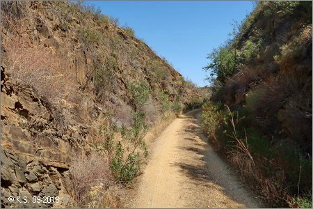 Auf der anderen Seite geht es unter einer gemauerten Brücke durch, dann folgt ein Abschnitt mit steilen Felseinschnitten.