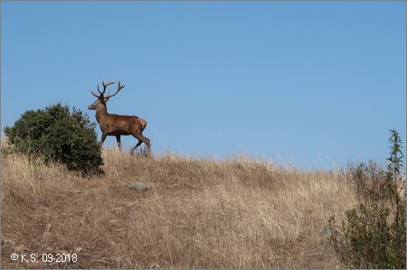Zunächst durch schroffe Felseinschnitte, dann durch eine karge Landschaft, übersäht mit Zistrosensträuchern, entfernt sich die Bahntrasse vom Fluss. Es geht stetig mit geringer Steigung bergauf.