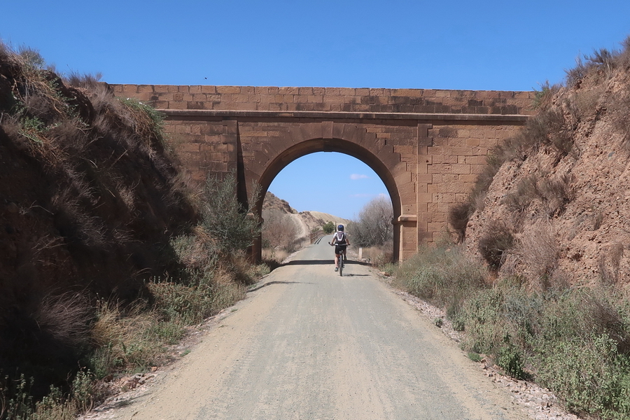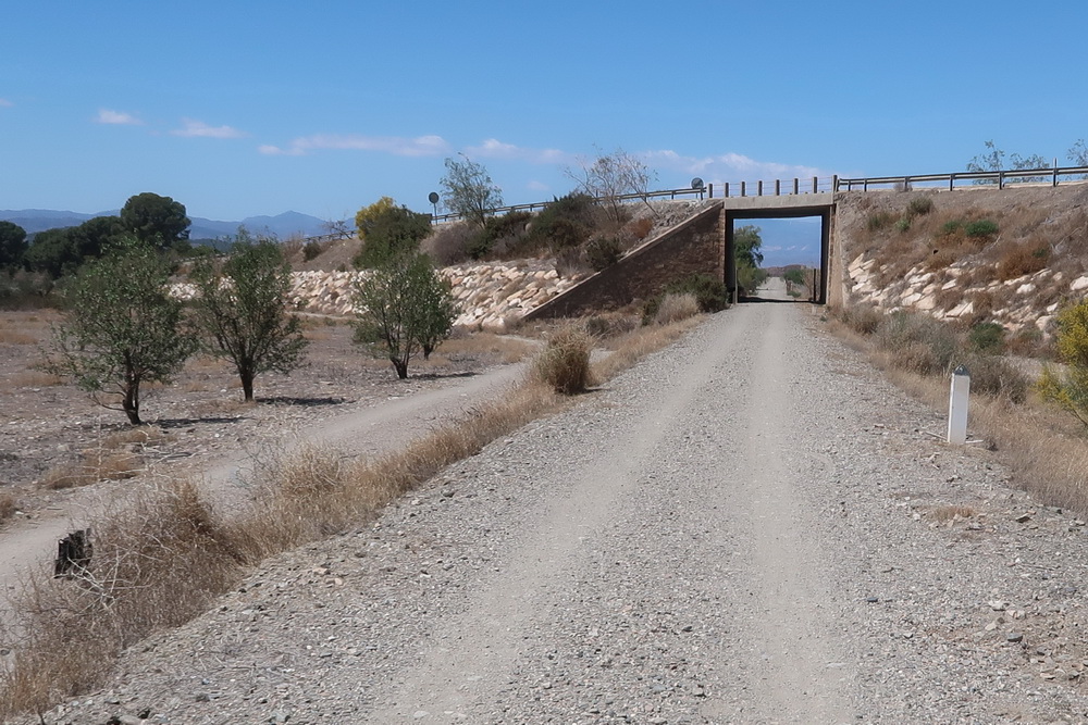 Dieser Radweg gehört zur Via Verde del Valle del Almanzora: Baúl - Arboleas (101 km). Leider fehlt noch die Verbindung von ca. 18 km Länge zwischen Huercal-Overa und Arboleas. Wir beginnen deshalb die Fahrt im Ort Almendricos und fahren Richtung Westen, da das Ende der jetzigen Via Verde an einem Zaun oberhalb der Autobahn endet (Hier soll bald ein Steg gebaut werden). Wenn die Lücke von ca. 11 km geschlossen ist, kann man die gesamte Strecke bis nach Baza und Baúl befahren (etwa136 km).