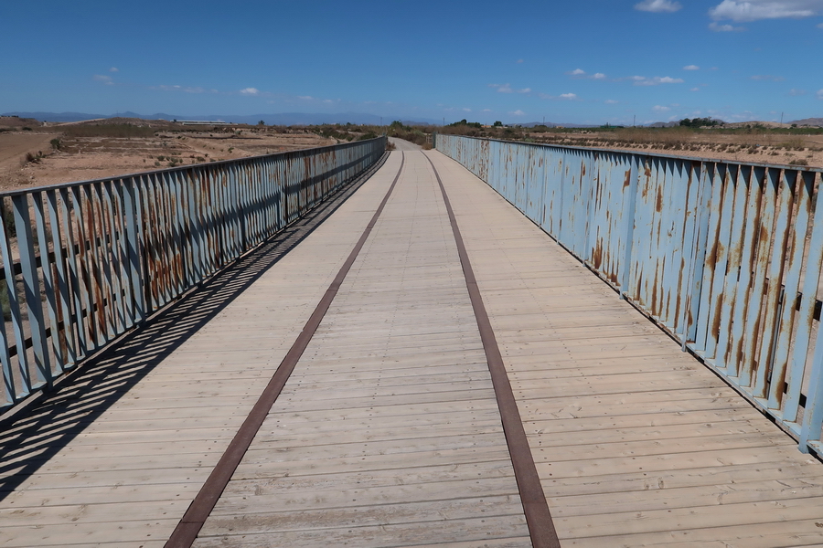 Aber es gibt Licht am Horizont. Offenbar haben engagierte Einheimische den Bau eines Stegs gefordert, und das Ergebnis wird man vielleicht bald sehen? Nur 11 km Kilometer trennen das Ende des Radwegs von Arboleas, wo man die Via Verde del Valle del Almanzora - Baúl - Arboleas erreicht. Auf den Infotafeln ist dies ja schon zu sehen.....