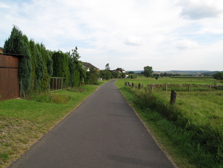 Rechts halten und der Beschilderung folgen. Die gesamte Strecke ist asphaltiert. In flotter Fahrt geht es abwärts durch die Felder. Nach dem Ort Völzberg wird es etwas flacher- Vorsicht, Rücksicht nehmen auf Traktoren.