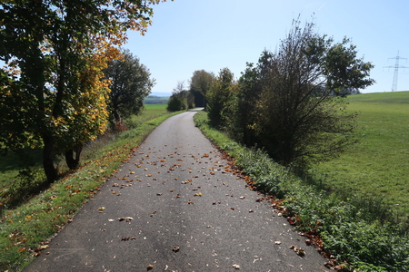 Das folgende Wegstück ist wohl die alte Bahntrasse. Bei Unterreichenbach muss die L 3195 überquert werden.
