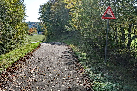 Weiter bergab auf der Trasse, dann folgt ein kurzes, heftiges Gefälle.