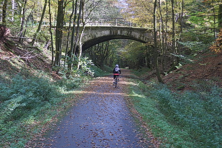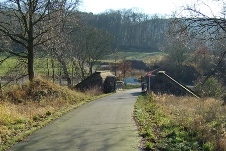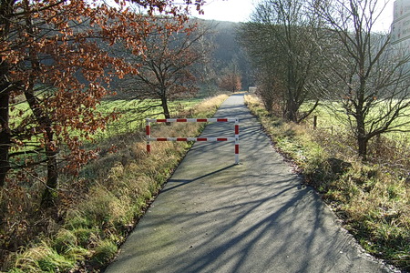 An der Halbsperre beginnt wieder der Radweg auf der Trasse, es geht Richtung Hirzenhain.