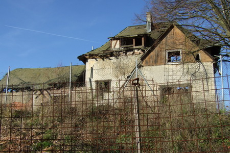 Von der ehemaligen Ladestelle Alteburg sind noch Rampen und die Reste eines hölzernen Prellbocks übrig geblieben. Eine Brücke überspannt den Einschnitt der Trasse.