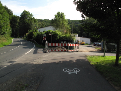 Der Bahnhof von Rohnstadt liegt heute auf dem Gelände einer Baufirma. Etwas schmaler, aber gut asphaltiert führt der Radweg auf der Bahntrasse bergauf.