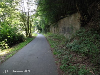 Der Gensbergtunnel (Nordportal) liegt versteckt im Gestrüpp, leider wurde er nicht in den Radweg einbezogen. Das Südportal liegt unterhalb der Weilstraße.