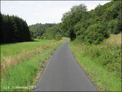 Durch das Wiesbachtal folgt die Strecke der alten Bahnlinie.