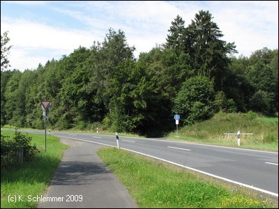 Die Straße verläuft parallel und muss vor Laubuseschbach überquert werden.