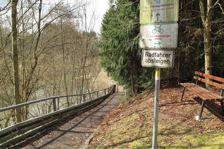 Im Bereich des Stausees von Driedorf (Rehbach) ist der Radweg ein Trampelpfad.