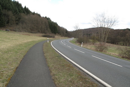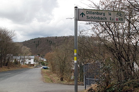 Der Radweg beginnt oberhalb von Rennerod, hinter der Kaserne der Bundeswehr am Rande des Waldes. Man fährt Richtung Tennisanlage. Ein neu asphaltierter Weg führt aufwärts, normgerechte Wegweiser zeigen die Richtung nach Herborn.