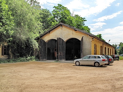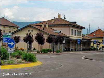 Etwa 400 m weiter auf dem alten Bahnhofsgelände steht noch der Lokschuppen. Der Maria-Theresien-Straße hinauf folgt der Radweg der ehemaligen Verbindungsstrecke zur Mendelbahn nach St. Anton.