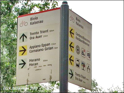 Auf der Bahnstrecke der ehemaligen Überetscher Bahn von Bozen nach Kaltern an der Südtiroler Weinstraße führt ein 16 km langer Radweg aus dem Tal der Eisack, Talfer und Etsch heraus in die Berge. Der 2 km kurze Anschluss zur Talstation der Mendelbahn (Standseilbahn) ist ebenfalls als Radweg beschildert.