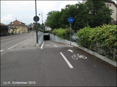 Hier wird der Radweg unterirdisch vorbeigeführt. Noch ein kurzes Stück Umfahrung innerorts ...