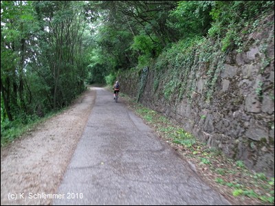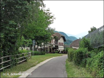 Es geht entlang der Straße zum alten Bahnhof von Eppan.